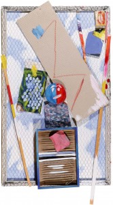 3 kleine Männlein singen ein Duett, 1982…, Öl u. Blechdosen auf Holz, 175 x 160 cm