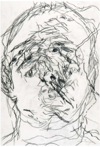 Face #5, 1997, Graphit auf semitransparenter Folie, 36 x 24 cm